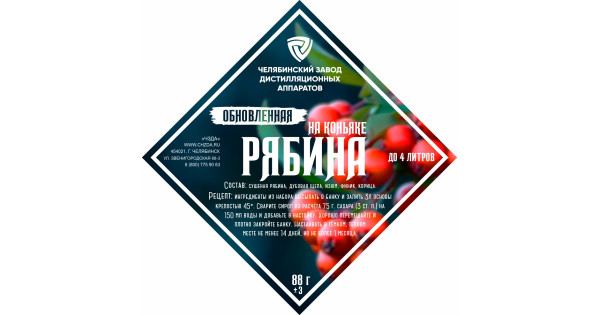 Set of herbs and spices "Rowan on brandy."Composition:The set of herbs and spices "Rowan on cognac" includes: fruits of red mountain ash, oak cubes of strong roasting, cinnamon, raisins, dates.Recipe:Pour oak cubes from a separate package with hot wa..
